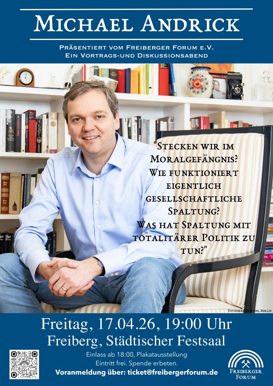 17. April, 19:00 Uhr: Rede im Freiberger Forum (Städtischer Festsaal, Obermarkt 16, 09599 Freiberg). Näheres hier
